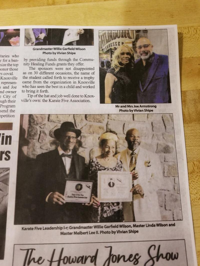 Over the decades Karate Five has won several Humanitarian Awards (Grandmaster Willie Wilson), K-5 Dojo recognition awards, lifetime achievement awards and community leadership awards.