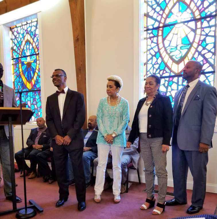 June 9, 2019 - Rev. Joseph Tolbert announces the Karate Five's Continuing Education Scholarship Award to "CJ" Burnett during Foster Chapel Baptist Church's 2019 Graduation Program morning services