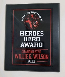 Grandmaster Willie Wilson was surprised and honored when it was announced at beginning of tournament day he was being presented with the 2022 KELLY'S HEROES HERO AWARD by Grandmaster Kelly Markham. What an awesome recognition from a friend and patron of the martial arts community.